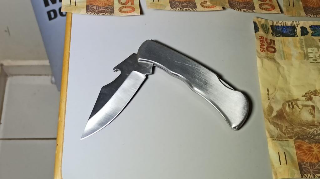No veículo, os policiais encontraram R$ 2,2 mil em notas falsas e um canivete utilizado pelo suspeito.