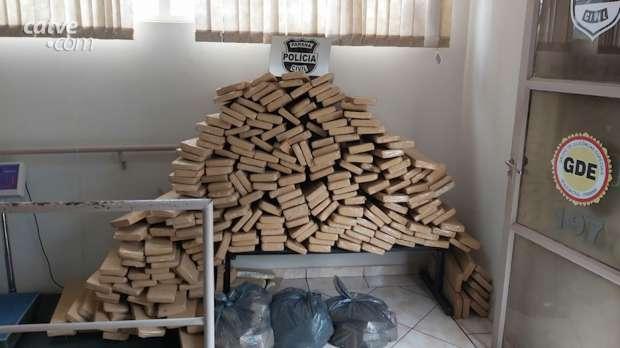No momento da abordagem foi localizado no porta malas do veículo Mercedes C180, 524 KG de maconha.