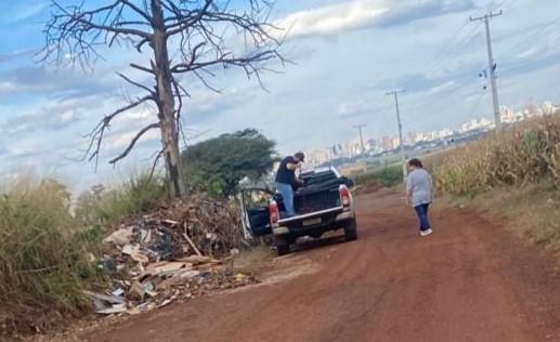 Na tarde desta quarta-feira (4), um casal foi pego em flagrante descartando entulho de forma irregular em uma estrada rural próxima à saída de Toledo. A cena foi registrada por dois ciclistas que passavam pelo local e presenciaram o momento em que uma caminhonete S10 descarregava o lixo.