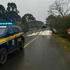A rodovia na qual o veículo tombou ficou completamente interditada e não há previsão para liberação.