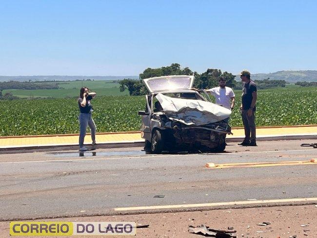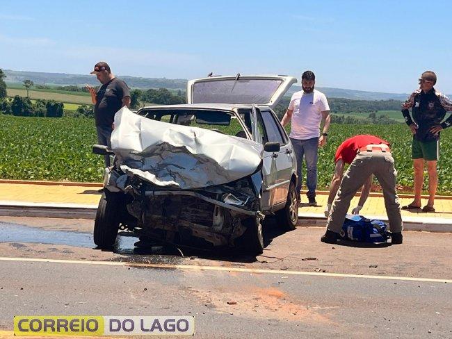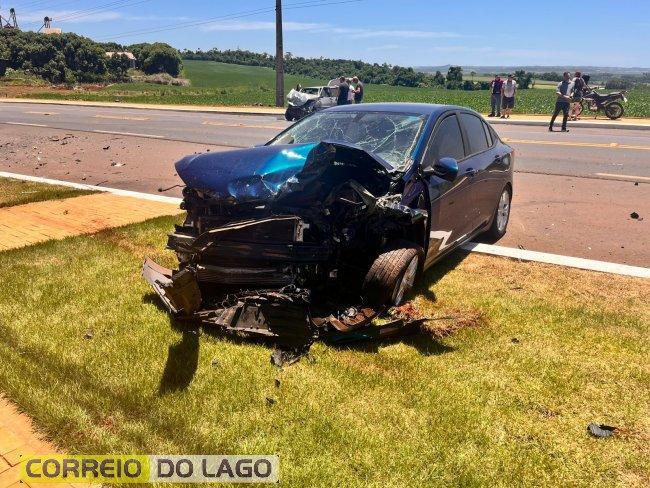 De acordo com informações levantadas no local, o acidente envolveu um Chevrolet Onix — que seguia no sentido Santa Helena/Esquina Céu Azul — e um Fiat Uno, que trafegava no sentido contrário. A colisão ocorreu no momento em que o motorista do Uno tentou acessar a entrada de um posto de combustíveis.