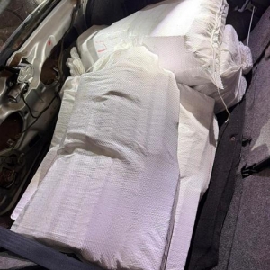 No carro estavam um homem de 28 anos, que conduzia o veículo, e sua esposa, de 22 anos. Durante a busca, foram encontrados seis sacos contendo 269 tabletes de maconha, envolvidos em fita adesiva branca.