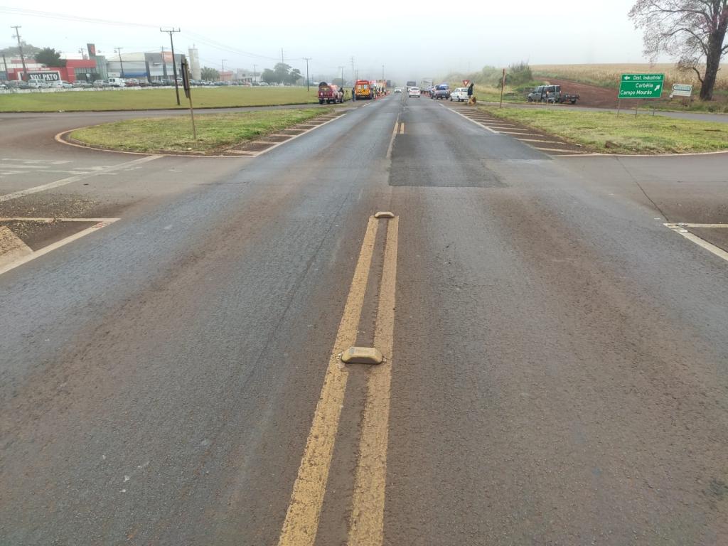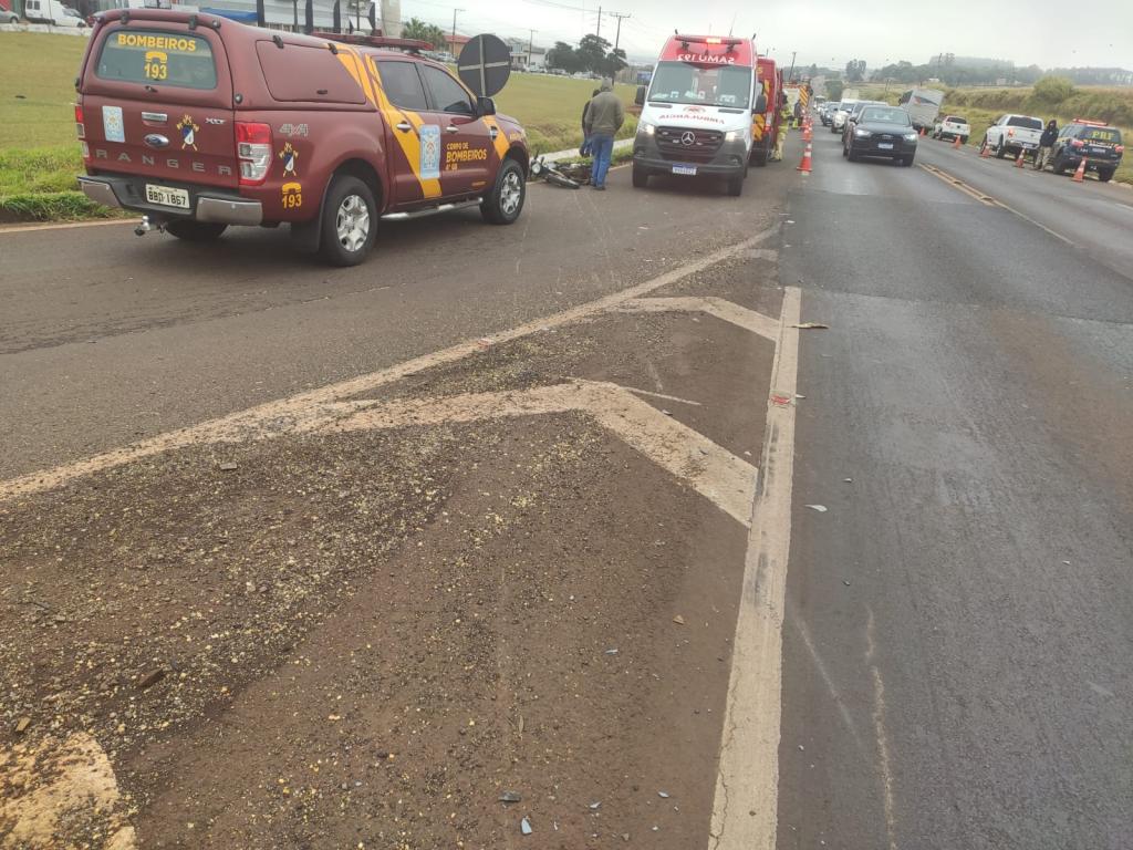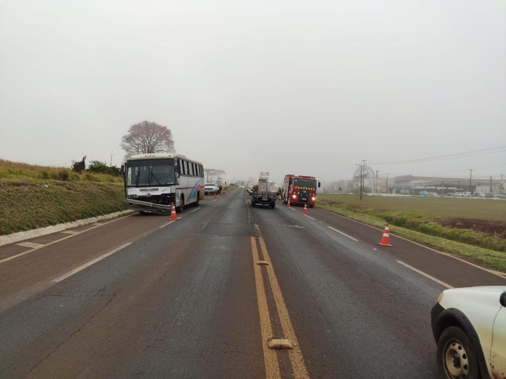 O coletivo transportava 22 funcionários de uma empresa e seguia sentido Corbélia quando aconteceu a batida com a motocicleta.