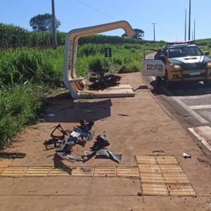 Com o impacto, os dois ocupantes foram arremessados a vários metros de distância, caindo em uma área de vegetação às margens da rodovia. A moto ficou completamente destruída.
