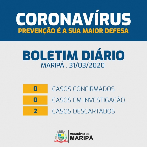 O setor de Vigilância Epidemiológica da Secretaria de Saúde de Maripá informou na tarde de hoje (31) o resultado dos exames realizados em dois casos suspeitos de COVID-19. Com os exames negativos para a doença, os casos foram descartados.