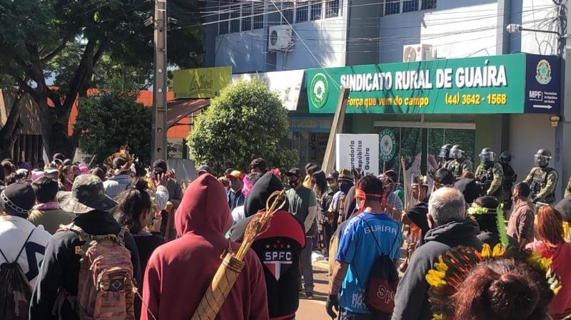 Em Guaíra, o primeiro manifesto aconteceu na última quarta-feira (23) e reuniu cerca de 300 indígenas. Da mesma foram, hoje os indígenas novamente se reuniram e se concentram em frente ao prédio do Ministério Público Federal e também do Sindicato Rural de Guaíra.