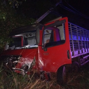 Após o choque, o caminhão saiu da pista e atingiu um poste de energia elétrica às margens da rodovia.