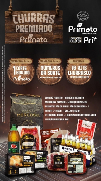 Ainda dá tempo de você participar da campanha “Churras Premiado” da Primato, uma ação promocional que vai sortear 10 kits churrasco, sendo um para cada loja participante da rede. A campanha busca valorizar os clientes e promover os cortes especiais da linha Primato.
