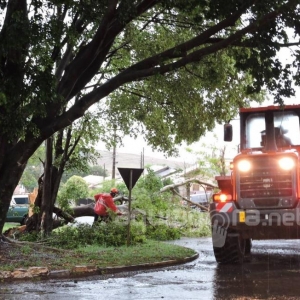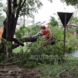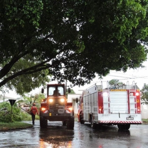 Durante a manhã equipe do Corpo de Bombeiros foi acionada para retirar galhos e árvores que caíram devido à chuva e vento da noite e madrugada.