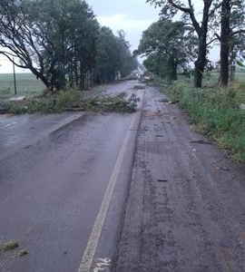 A chuva e o vento que atingiu Palotina e região quebrou diversos galhos na PR182 entre Palotina e Maripá.