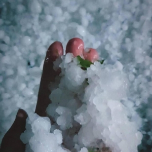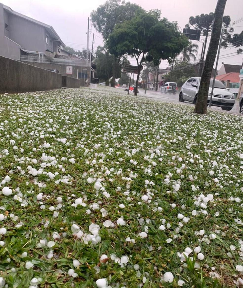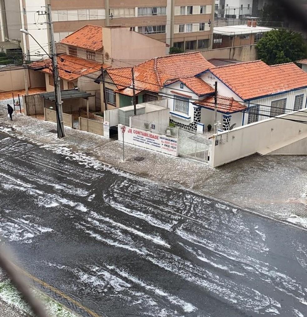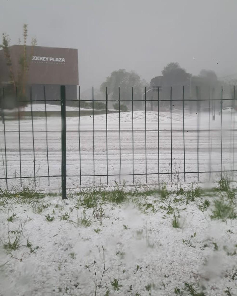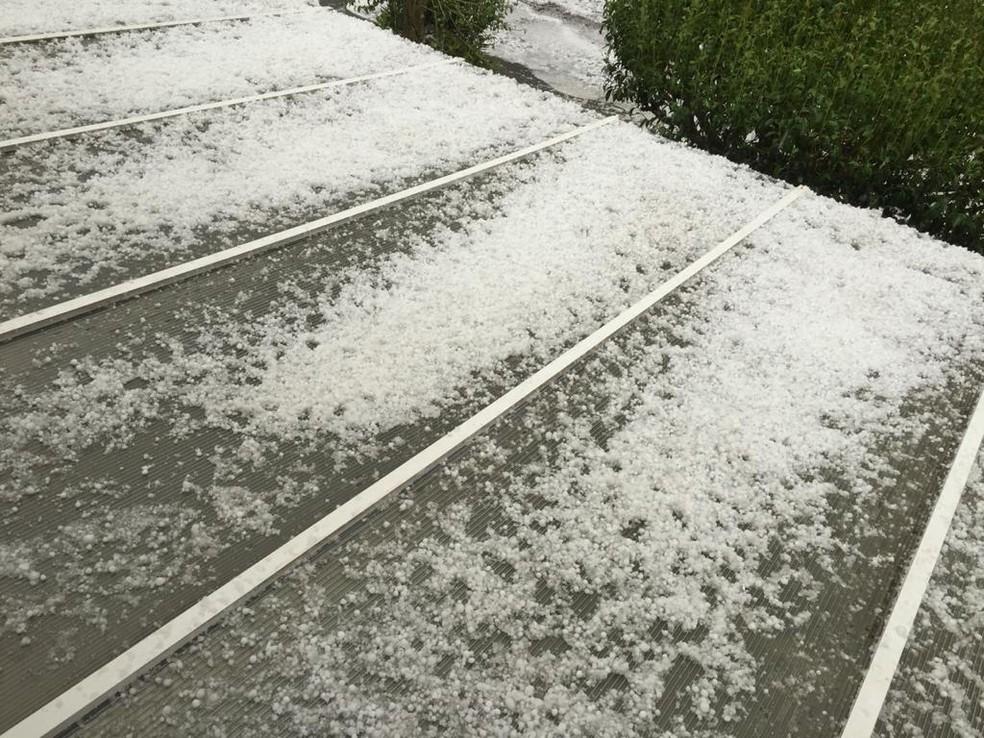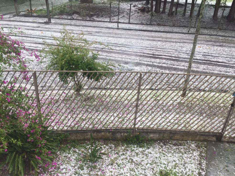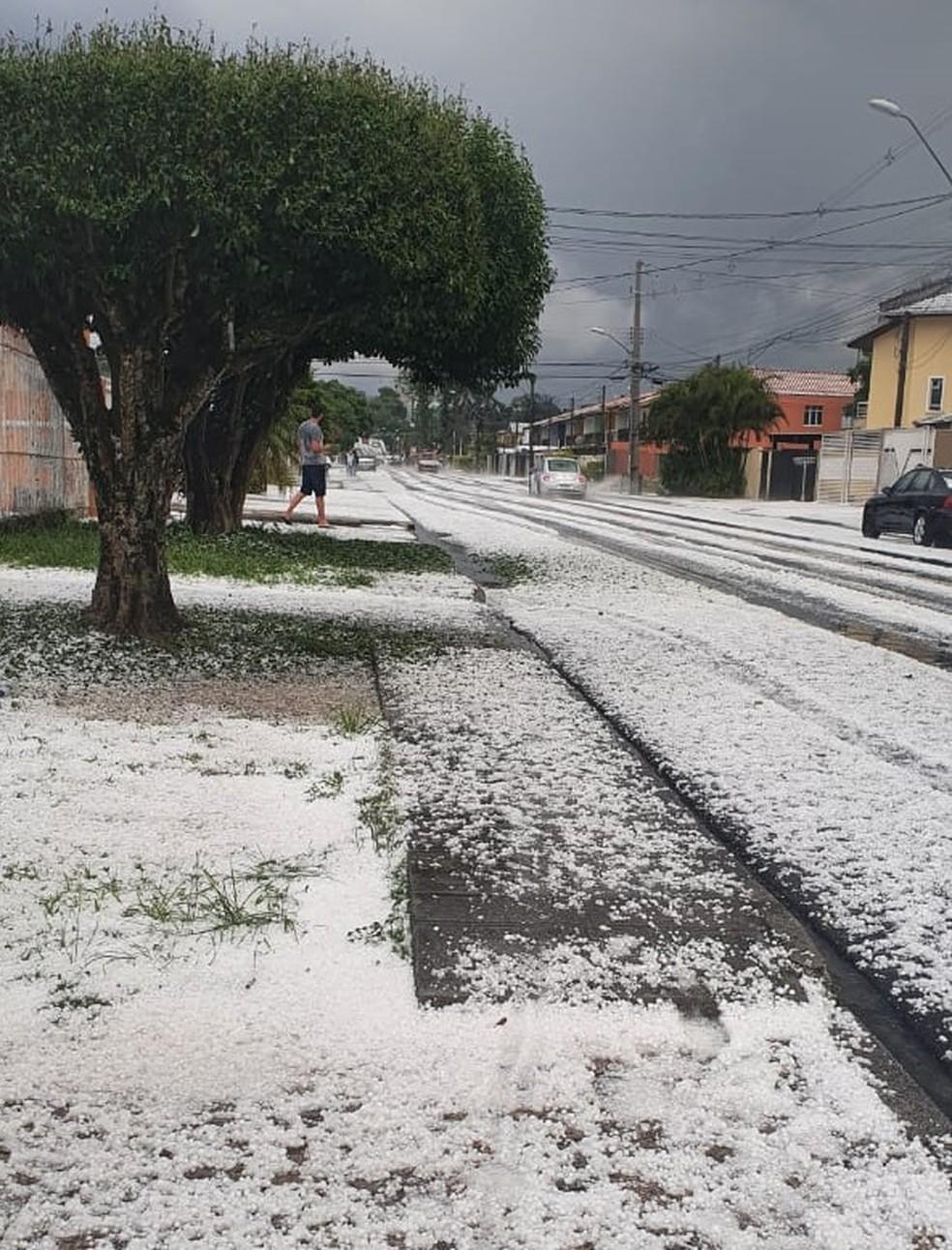 Moradores e câmeras de monitoramento registraram locais cobertos pelas pedras de gelo após o fenômeno.