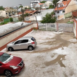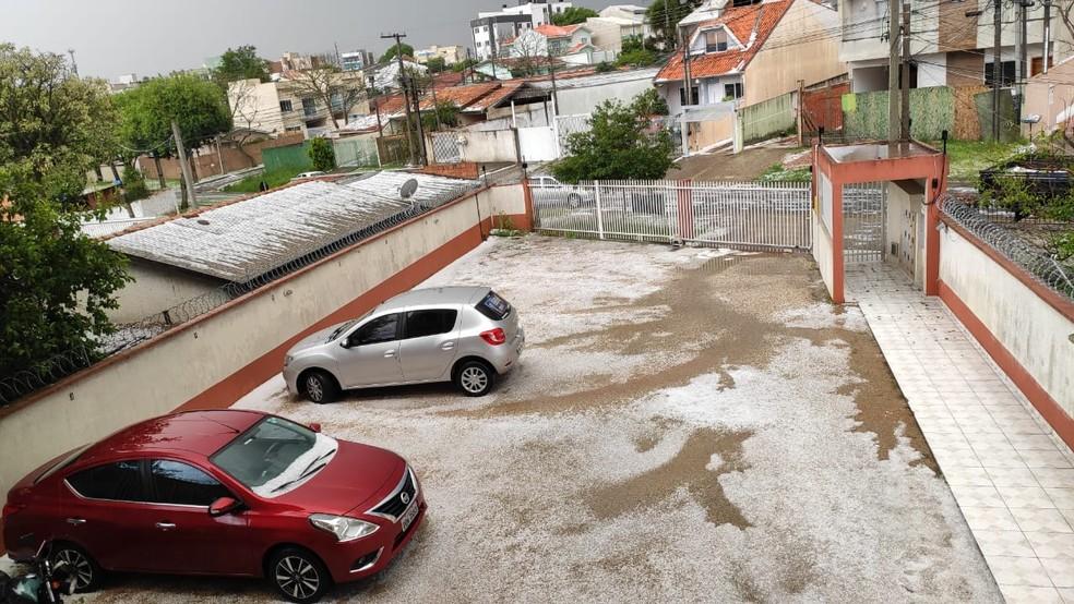 A Defesa Civil de Curitiba informou que recebeu 37 ocorrências de fornecimento de lona para casas destelhadas pelo granizo e ventos fortes.