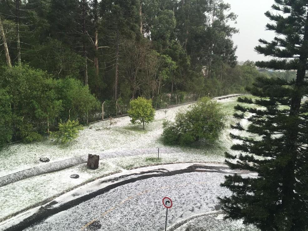 Na BR-277, trecho da capital, as pistas da rodovia ficaram cobertas por granizo.