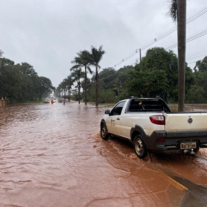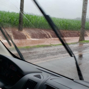 Nas proximidades da Polícia Rodoviária Estadual também houve alagamentos, nas imagens pode-se notar grande quantidade de água saindo das lavouras.