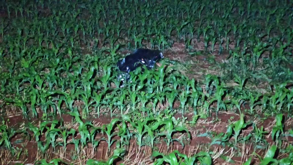 A vítima foi lançada aproximadamente 40 metros do local da batida e caiu dentro de uma lavoura de milho.