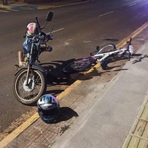 Segundo informações obtidas no local, um rapaz que estava de garupa na moto evadiu-se do local deixando o condutor da moto e o ciclista caído no chão, equipes da Polícia Militar e também na Guarda Municipal atenderam a ocorrência.