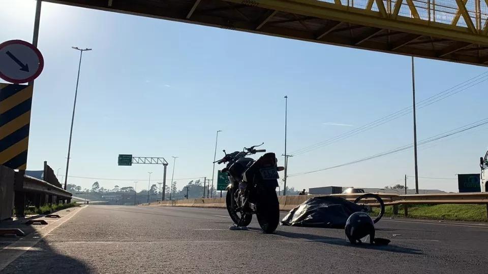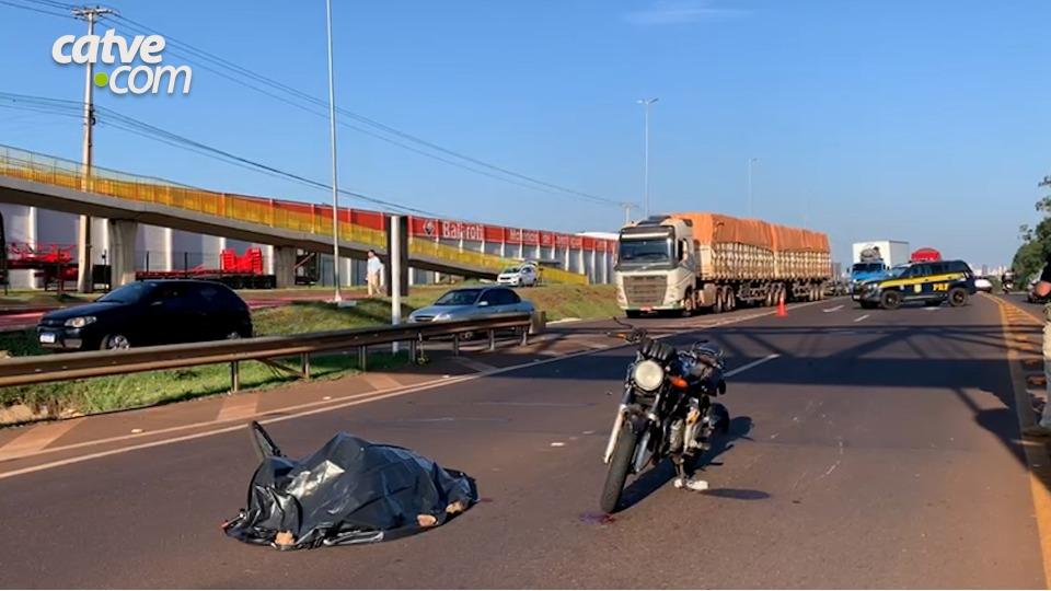 A batida envolveu uma Honda CBX Twister 250 cilindradas e uma bicicleta, embaixo da passarela no Trevo Cataratas, na pista sentido a Curitiba.