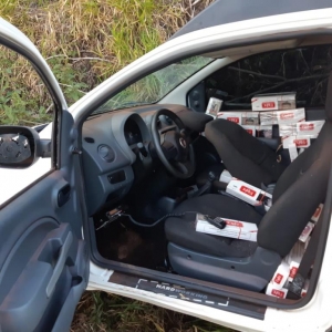 Hoje (28) no km 543 da BR 272, município de Terra Roxa, Polícia Rodoviária Federal encontra veículo carregado de cigarro às margens da BR.