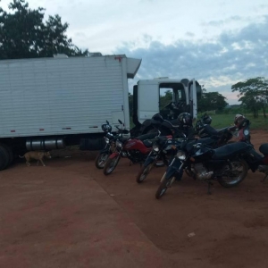 Mais de 300 caixas de cigarro contrabandeadas foram deixadas em uma embarcação, às margens do rio. Um caminhão e outras seis motos também foram apreendidas.