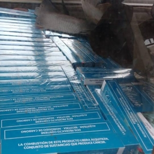 Ao realizar a abordagem, foram encontradas várias caixas de cigarros contrabandeados do Paraguai.