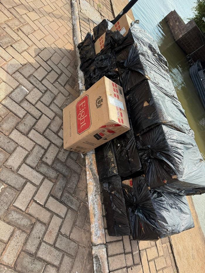 A carga ilícita estava escondida em meio à mata e foi localizada pelas equipes durante patrulhamento embarcado no rio, uma área conhecida por ser rota de contrabando. O material apreendido representa um prejuízo estimado em R$ 50 mil ao crime organizado que atua na fronteira.