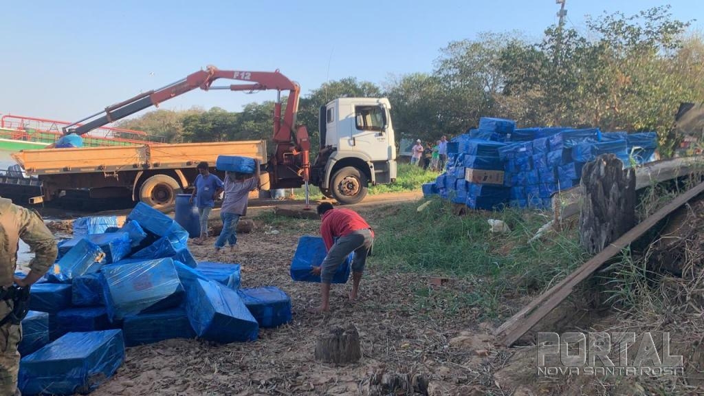 No local foram apreendidas 05 embarcações carregadas com aproximadamente 300 caixas de cigarros contrabandeados do Paraguai, um prejuízo de aproximadamente R$ 1.000.000,00 (um milhão de reais) à quadrilha criminosa.