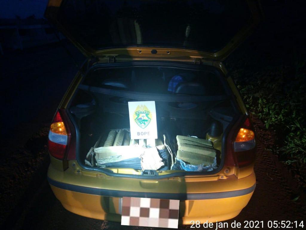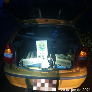 Nesta madrugada Policiais Militares da RONE em patrulhamento pelo município realizaram abordagem a um veículo Palio que estava em alta velocidade pela via e com a parte traseira rebaixada caracterizando estar transportando uma carga, por ser uma via conhecida de transporte de ilícitos a equipe resolveu efetuar a abordagem.