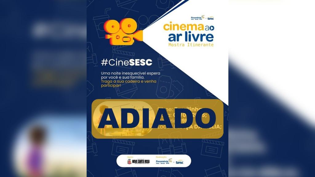 Integrando a programação da Semana da Pátria, o município de Nova Santa Rosa receberia na noite desta sexta-feira (05) mais uma edição do Cine Sesc, projeto que leva o cinema para espaços públicos em diversas cidades do Paraná. No entanto, devido às condições climáticas, o evento foi adiado.