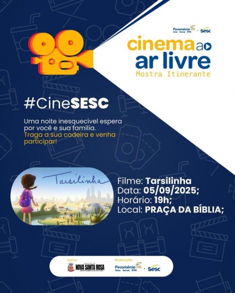 Integrando a programação da Semana da Pátria, o município de Nova Santa Rosa receberá na noite desta sexta-feira (05), mais uma edição do Cine Sesc, projeto que leva o cinema para espaços públicos em diversas cidades do Paraná. A exibição será ao ar livre, na Praça da Bíblia, a partir das 19h, com entrada gratuita.