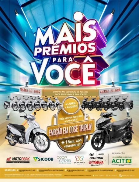 O Primato Supermercados é mais benefício para quem busca qualidade, preço e prêmios. Além da campanha interna, intitulada ‘Clube de Vantagens Primais’, onde o cliente acumula pontos para trocar por itens de sua preferência, a Cooperativa participa também da atual campanha ‘Mais Prêmios para Você’, promovida pela ACIT (Associação Comercial e Empresarial de Toledo), que pretende contemplar 15 consumidores do comércio de Toledo até o mês de agosto, com 15 motocicletas.