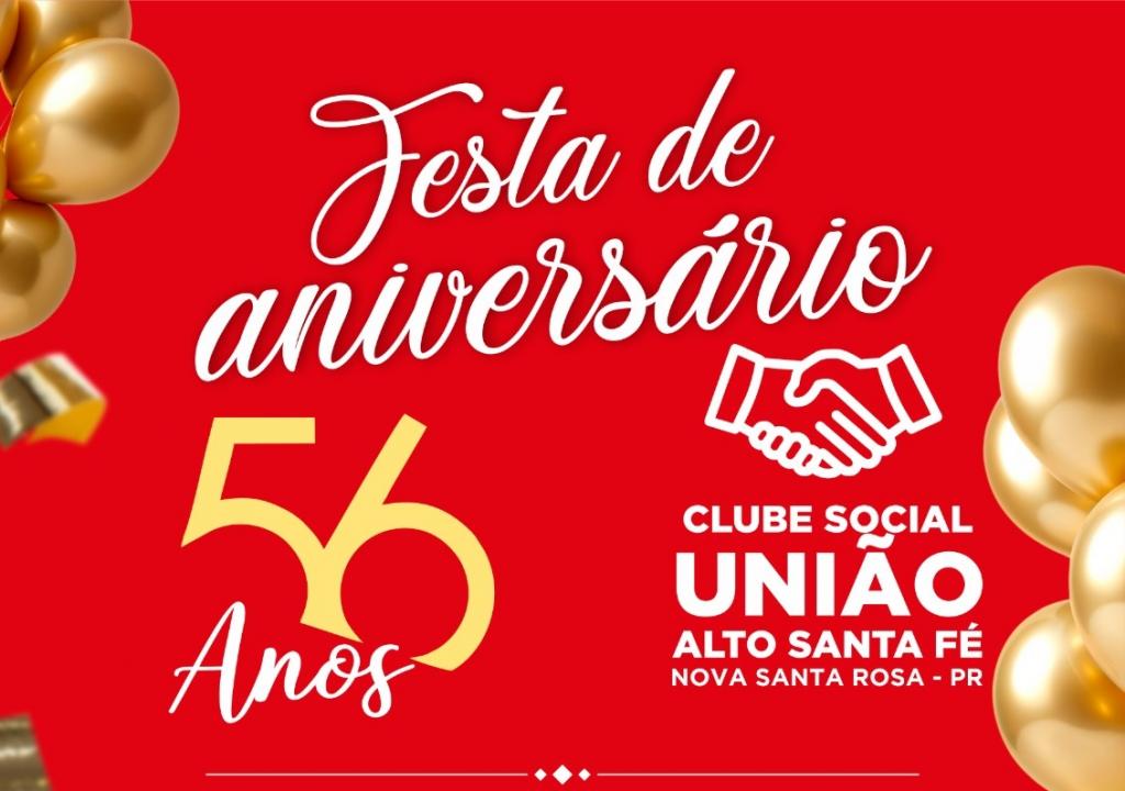 No próximo dia 23 de março, um domingo, a comunidade de Alto Santa Fé, em Nova Santa Rosa, se reunirá para celebrar os 56 anos do Clube Social União. O evento promete muita animação, com uma programação especial para toda a família.