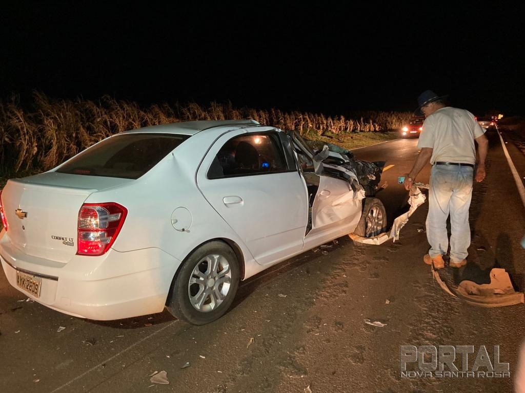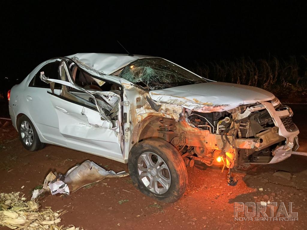 A colisão aconteceu quando um caminhão carregado de milho, cujo condutor, um senhor morador de Nova Santa Rosa, seguia sentido a Maripá, e em dado momento um veículo Cobalt, com placas de Palotina, que seguia logo atrás, acabou colidindo na traseira do caminhão.