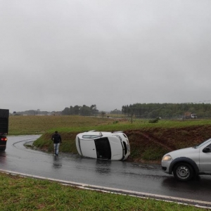 Um veículo Cobalt, branco, placas de Toledo, conduzido por um homem de 39 anos tombou na manhã desta segunda-feira (12) na PR 323 do KM 321 em Perobal, município a aproximadamente 20 km de Umuarama, região noroeste do estado.