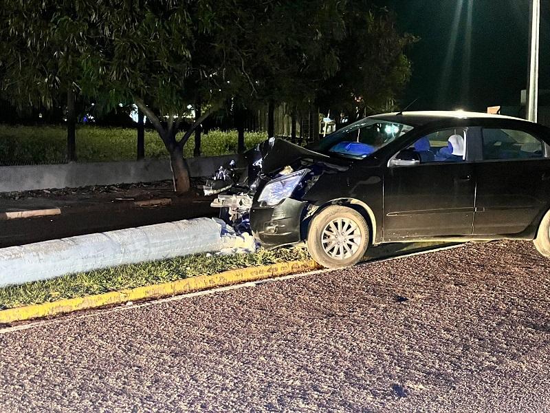 De acordo com informações apuradas no local, o condutor de um Chevrolet Cobalt trafegava pela via quando, nas proximidades da estrutura inacabada do antigo Shopping Costa Oeste, perdeu o controle da direção e atingiu um poste no canteiro central. O impacto foi forte o suficiente para derrubar a estrutura.