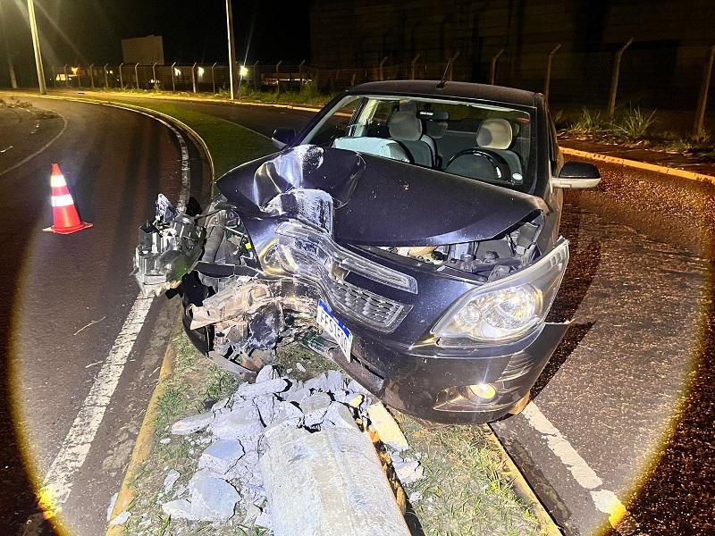 Um carro colidiu contra um poste de iluminação pública na noite desta segunda-feira (21), em Toledo. O acidente aconteceu na Rua Carlos Barbosa, no bairro Tocantins, por volta das 22h, e mobilizou uma equipe da Guarda Municipal.