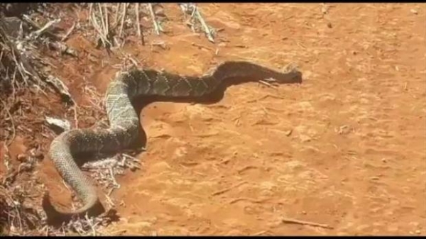 Trabalhadores da Fazenda Santa Rita, na Colônia Melissa em Cascavel, foram surpreendidos com a visita de uma cobra Cascavel, em meio a plantação na tarde de domingo (8).