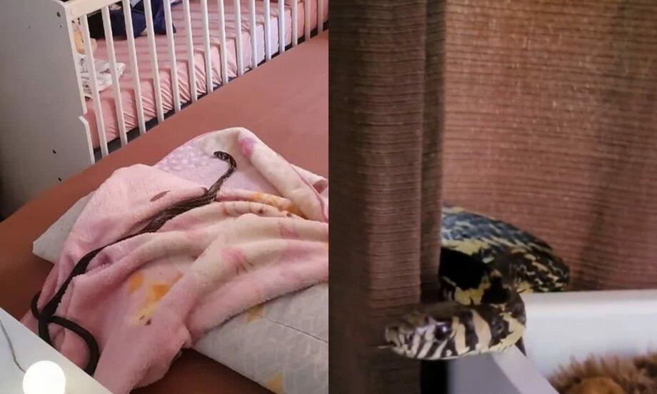 Uma cobra caninana assustou mãe e bebê ao subir na cama em que elas estavam deitadas na tarde desta quarta-feira (7) em Jaraguá do Sul, em Santa Catarina. O animal foi capturado logo depois, dentro do berço.