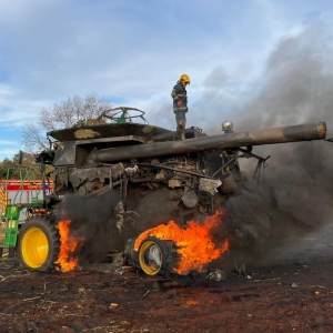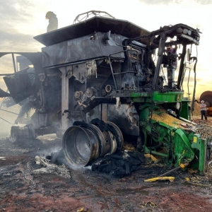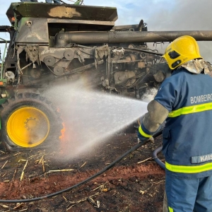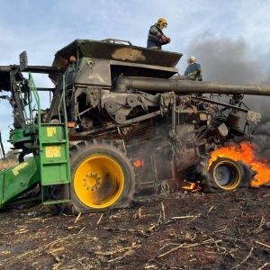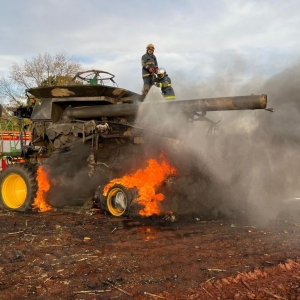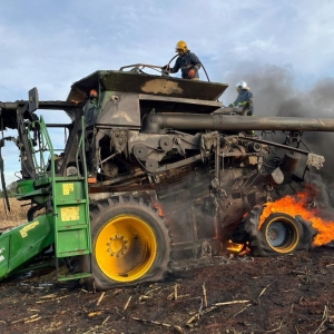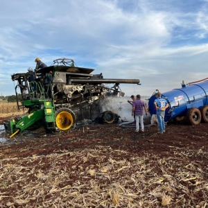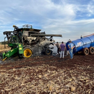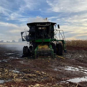 Segundo o senhor que estava colhendo milho em uma área de aproximadamente 40 alqueires, disse que só escutou um forte barulho na parte de trás do maquinário, provavelmente no motor, e segundo depois, notou que se tratava de um incêndio.