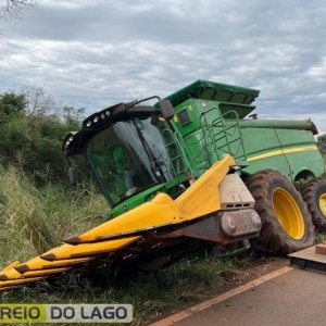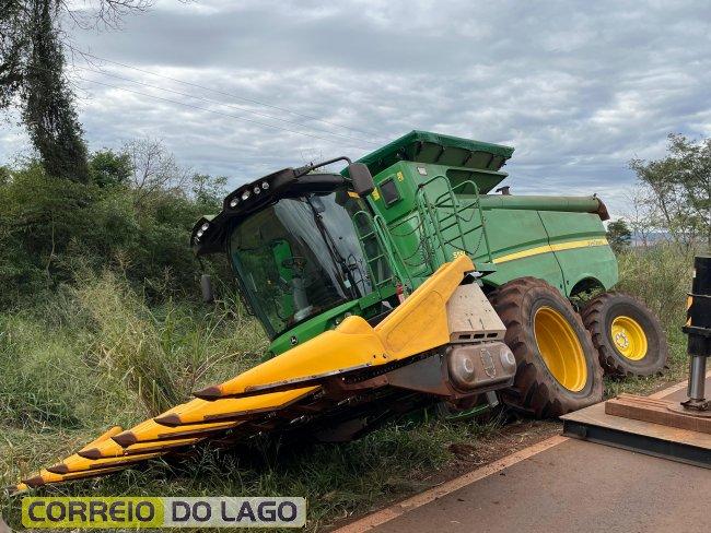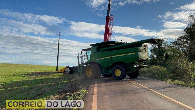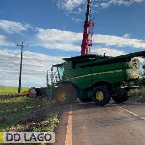 Uma colheitadeira que ficou em situação de risco de capotamento às margens da PR-488, no trecho entre Santa Helena e Diamante d’Oeste, foi retirada com sucesso ainda na tarde da quarta-feira (25).