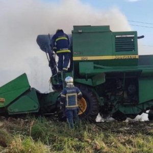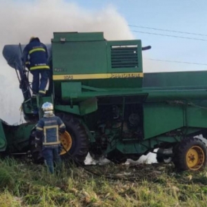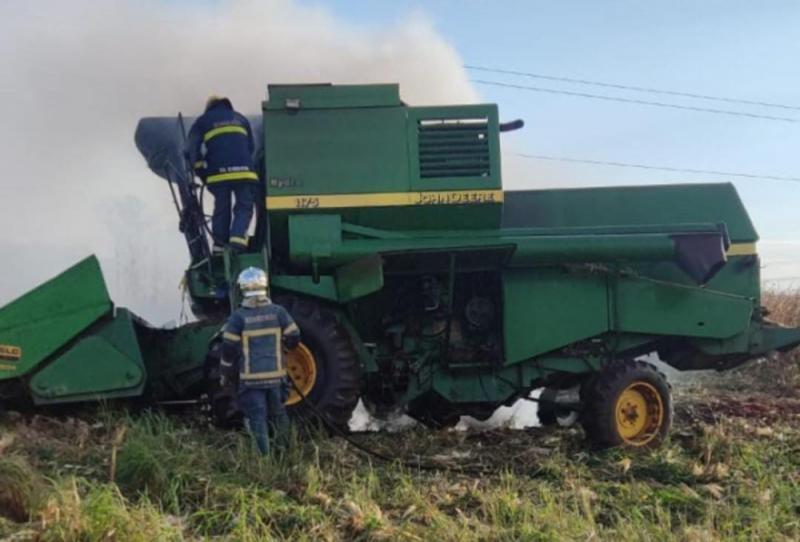 A rápida ação dos agricultores e do Corpo de Bombeiros impediu a completa destruição da colheitadeira John Deere.