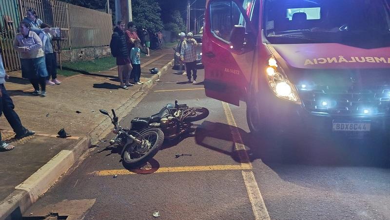 Um grave acidente foi registrado na noite de terça-feira (03) na Rua Navílio Donassollo, no bairro Jardim da Mata, em Toledo. Um jovem de 23 anos ficou ferido após perder o controle da moto e bater contra um poste de iluminação pública.