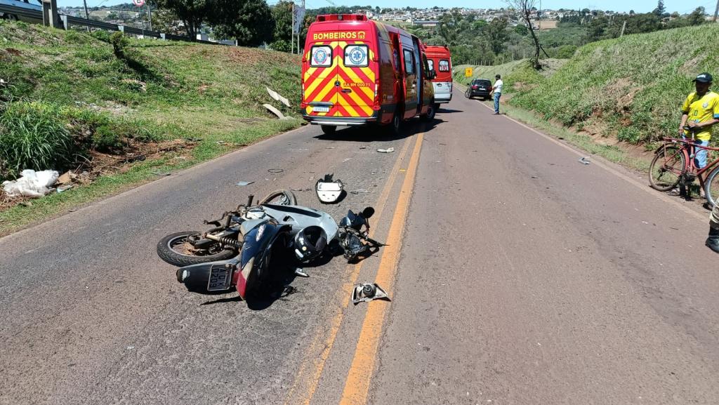 Uma colisão no início da tarde desta sexta-feira (12) deixou uma motociclista em estado gravíssimo no anel viário da rodovia BR-317, entre os trevos de acesso a Ouro Verde do Oeste e São Pedro do Iguaçu, em Toledo.