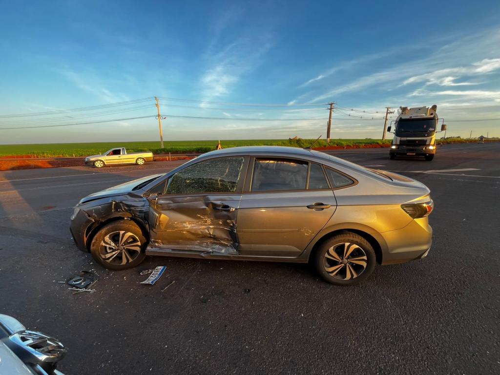 Uma colisão envolvendo uma VW Amarok e um VW Virtus deixou duas passageiras feridas na tarde desta sexta-feira (21) na PR-182, em Palotina. O acidente ocorreu na rotatória do km 281, no trecho que liga a cidade ao acesso da rodovia municipal.