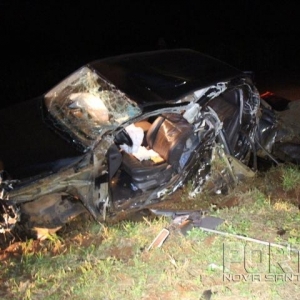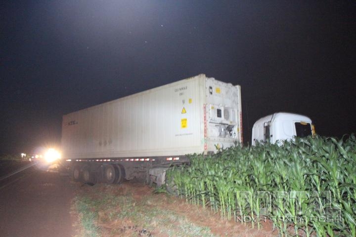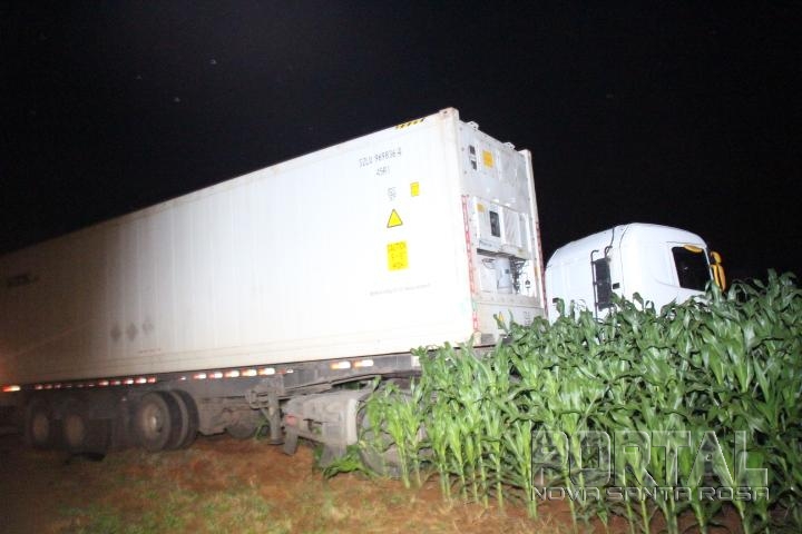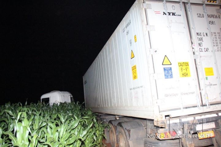 A carreta, após o impacto foi parar a aproximadamente 20 metros dentro de uma lavoura de milho, o condutor não teve ferimentos.