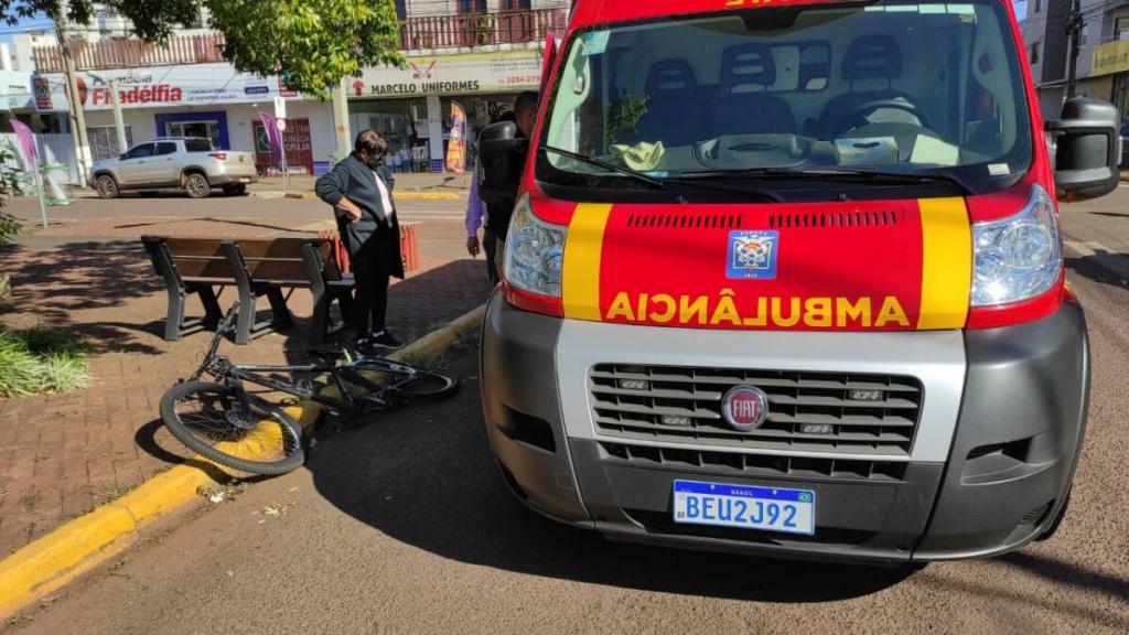 A colisão envolveu um veículo Corolla e uma bicicleta na esquina das ruas 7 de Setembro e São Paulo.