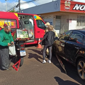 O acidente aconteceu quando o motociclista trafegava pela Rua Santos Dumont e o carro seguia pela Souza Naves, a condutora do Civic atravessou a Santos Dumont e houve a colisão.