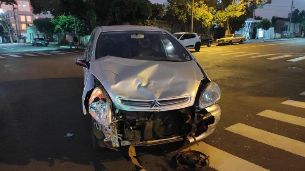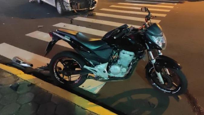 O acidente aconteceu no cruzamento das ruas Paraná e Men de Sá, na esquina da Igreja Matriz Católica e envolveu um veículo Citroen/Picasso com placas de Marechal Cândido Rondon e uma Honda/CB300 com placa mercosul com registro também em Marechal Rondon.