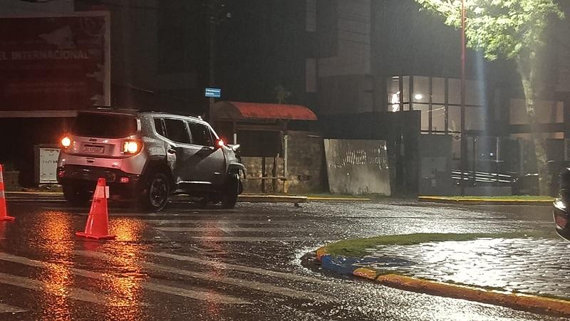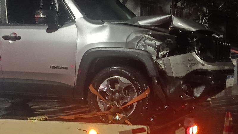 Conforme apurado no local, o Jeep Renegade seguia pela Rua Criciúmal, enquanto o Fiat Palio trafegava pela Bento Munhoz da Rocha Neto. No ponto em que as vias se encontram, houve a colisão. Com a força do impacto, o Palio avançou sobre a calçada e atingiu a cerca de ferro de uma residência posicionada na esquina.