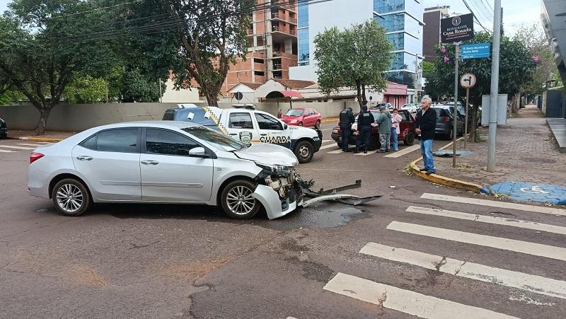 Uma colisão entre dois automóveis movimentou o trânsito na manhã desta segunda-feira (1º), no cruzamento das ruas Dom Pedro II e Bento Munhoz da Rocha Neto, na área central de Toledo. O acidente envolveu um Fiat Uno, com placas de Toledo, e um Toyota Corolla, emplacado no padrão Mercosul.