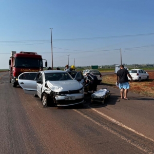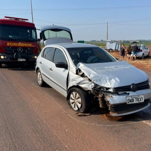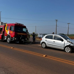 Por volta das 15h00 um Gol com placas de Cascavel e uma Zafira placas Mercosul colidiram no trevo que dá acesso a Maripá e Nova Santa Rosa na PR 491.